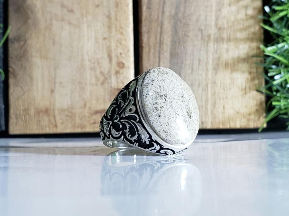خاتم عقيق يماني طحلبي مصنوع من الفضة الإسترلينية عيار 925، يتميز بحجر عقيق يماني طحلبي طبيعي بألوان ساحرة وتداخلات لونية رائعة. تصميمه الفاخر يبرز جمال الحجر الطبيعي من خلال النقوش الفريدة التي تعكس التراث العريق. يعتبر هذا الخاتم قطعة مميزة لمحبي الأحجار الكريمة الفريدة والتصاميم الجذابة.