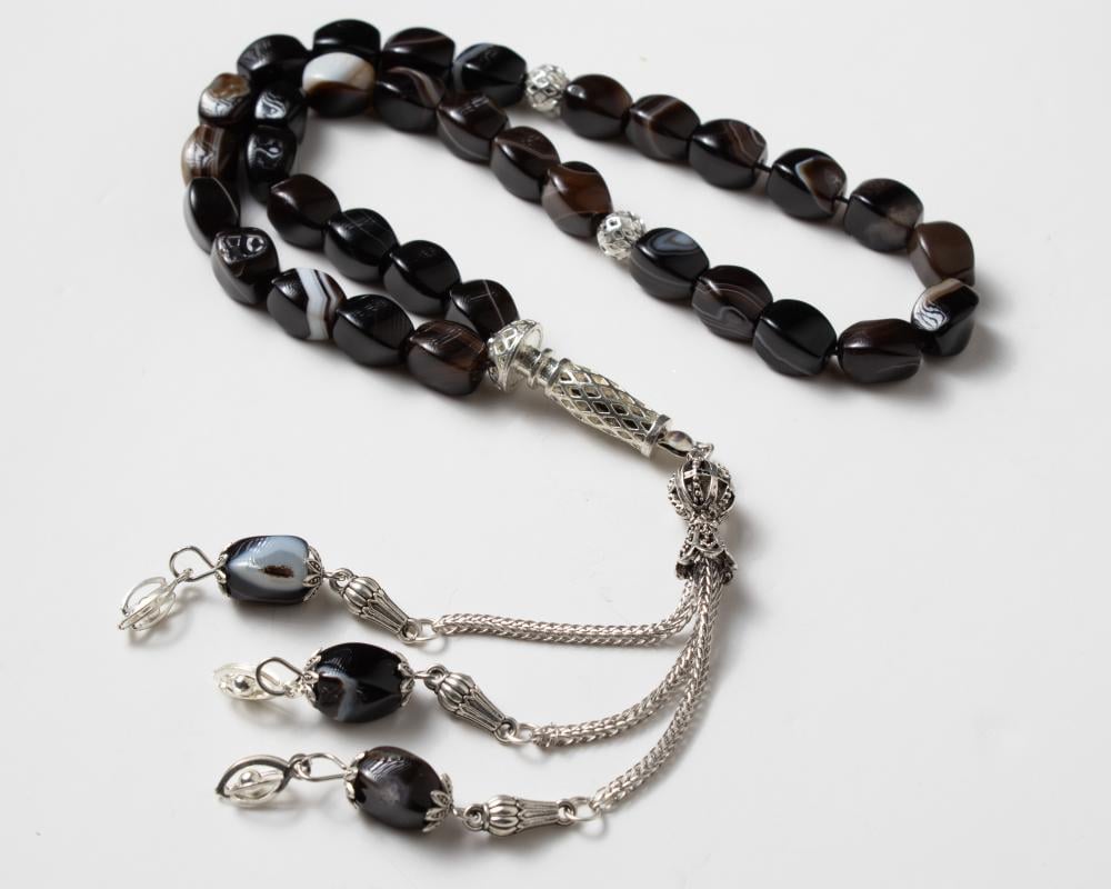 - الفواصل والنهايات: فضية بتصميم فريد يعزز من جمال السبحة.