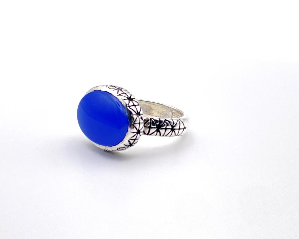 خاتم ملكي عقيق سماوي فضة سميكة عيار 925 بصياغة يدوية كلاسيكية ونقش خفيف