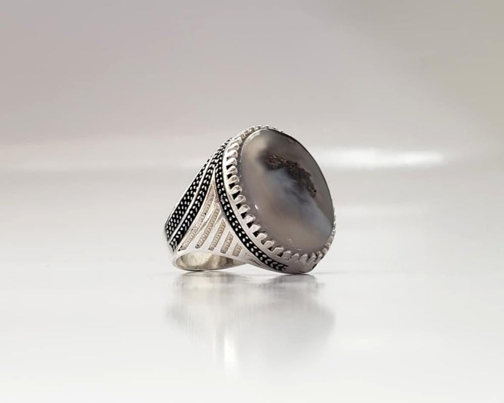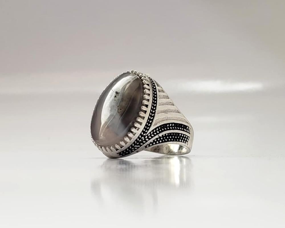 خاتم عقيق يماني طحلبي - فضة عيار 925 بتصميم فاخر