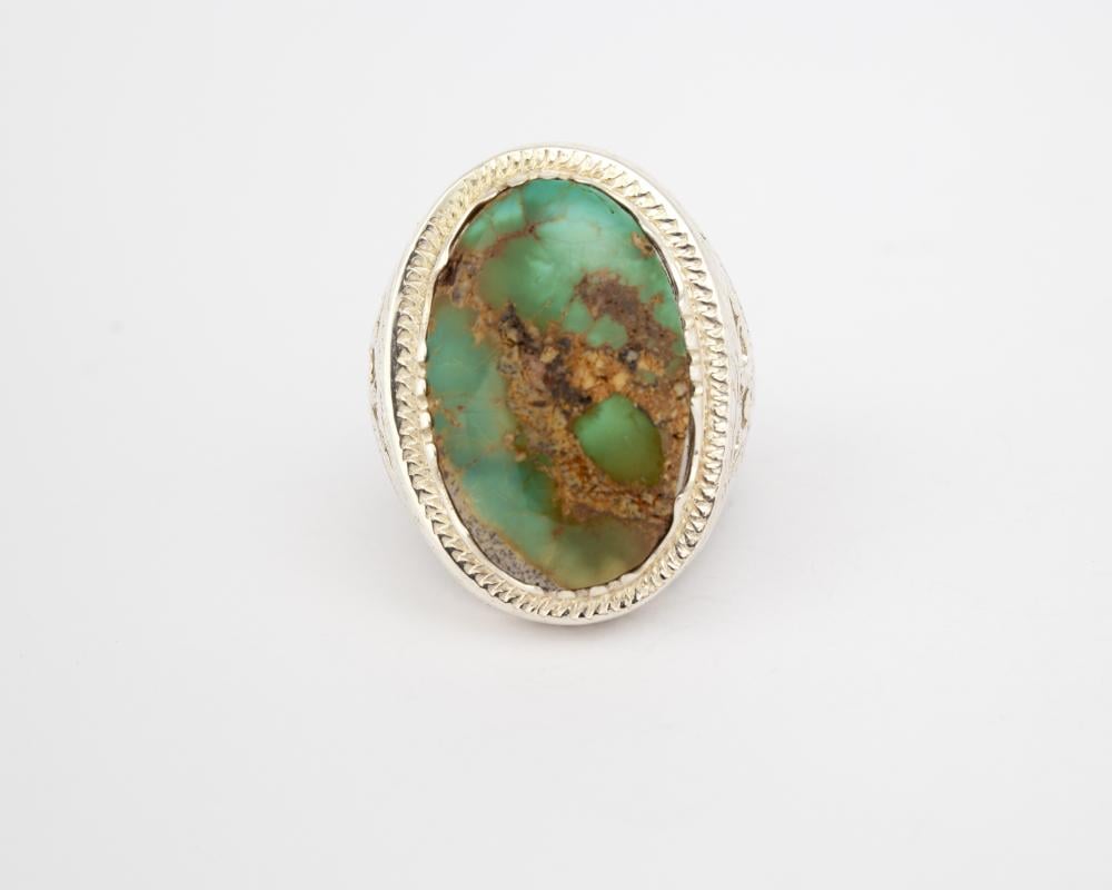 خاتم فيروز نيشابوري حسيني مصنوع من فضة عيار 950 ويأتي مع صياغة يدوية على موديل منشار حجازي، مما يمنح الخاتم طابعًا تقليديًا مع لمسة عصرية. يتميز بلونه الأزرق الفيروزي الجذاب الذي يضيف لمسة من التميز.