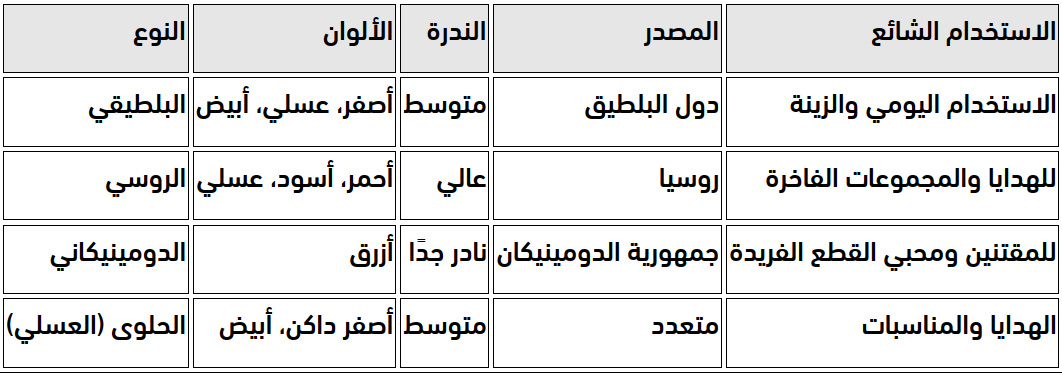 - 👈 الحلوى (العسلي): مزيج بين الأصفر الداكن والأبيض، ويُعتبر خيارًا شائعًا للهدايا.