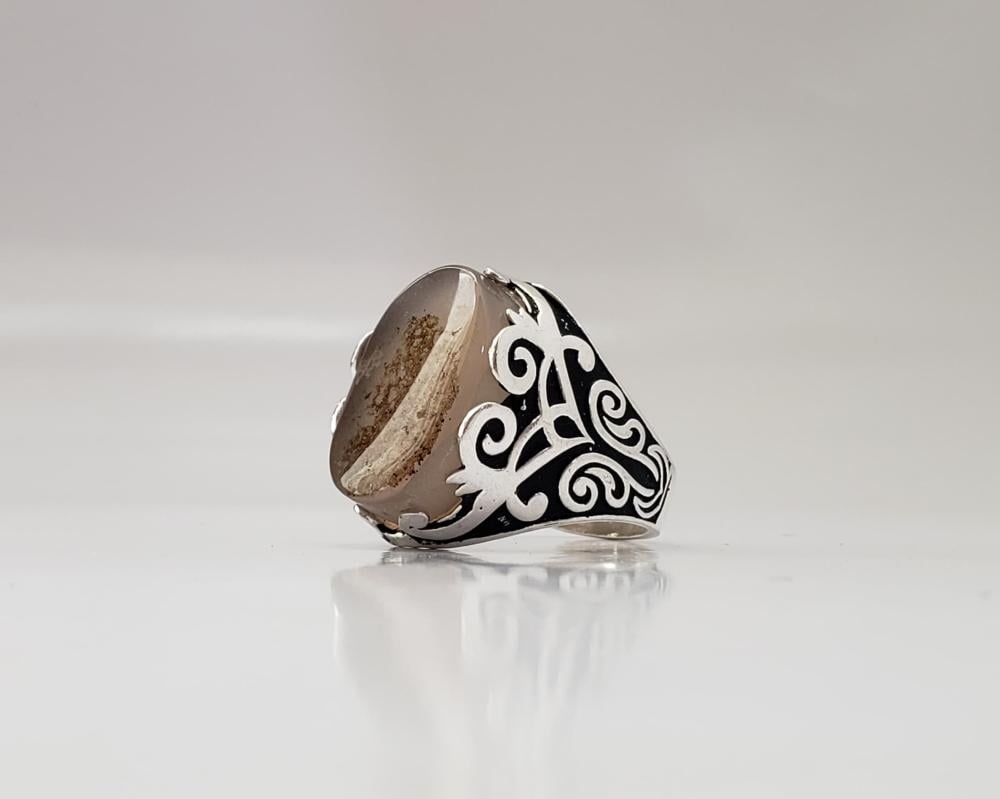 خاتم عقيق يماني طحلبي بفضة عيار 925 – نقوش طبيعية ولمسة فريدة