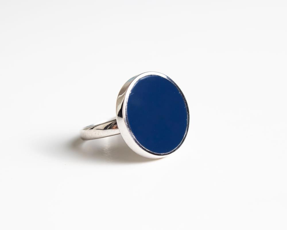 خاتم ملكي بحجر دائري كحلي لامع فضة عيار 925